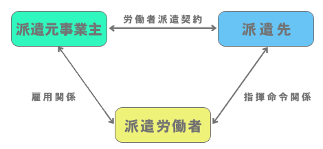 労働者派遣事業とは、派遣元事業主が自己の雇用する労働者を、派遣先の指揮命令を受けて、この派遣先のために労働に従事させることを業として行うことをいいます。