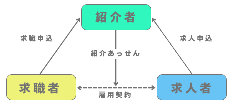 職業紹介とは、求人及び求職の申込みを受け、求人者と求職者の間の雇用関係の成立をあっせんすることをいい、有料職業紹介事業とは、職業紹介に関し手数料又は報酬を受けて行う職業紹介事業をいいます。